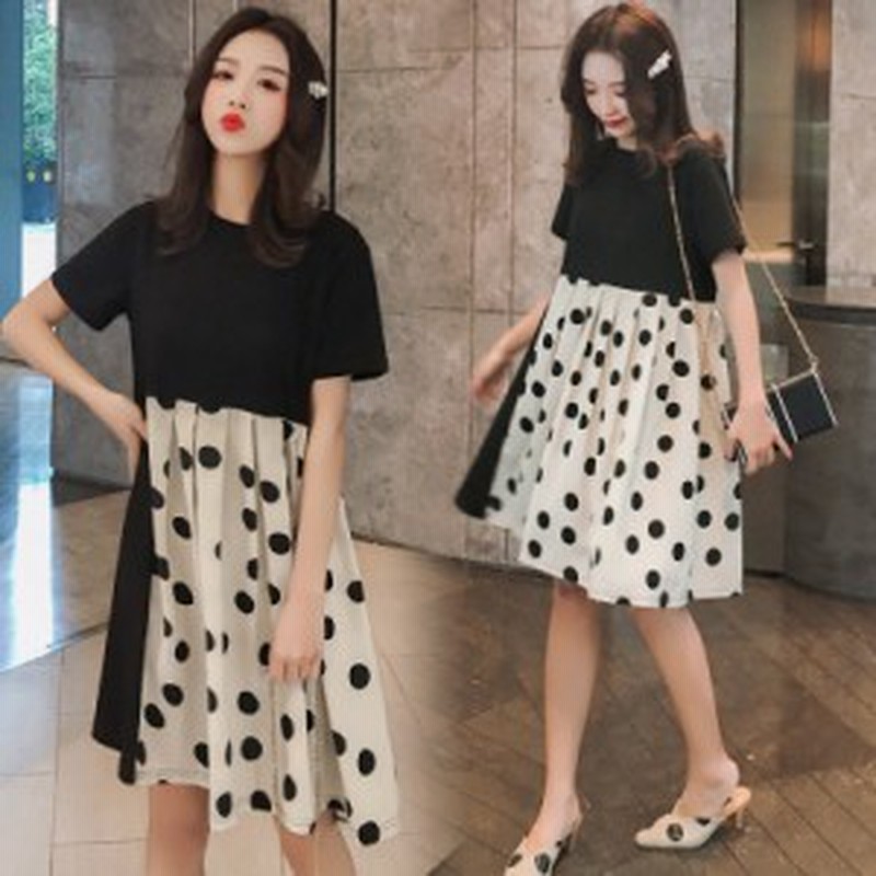 マタニティウエア Tシャツワンピ ドット柄 春夏 マタニティワンピース 大きいサイズ ミニ丈 ママ産前産後 半袖 ステッチ ゆったり おしゃ 通販 Lineポイント最大1 0 Get Lineショッピング